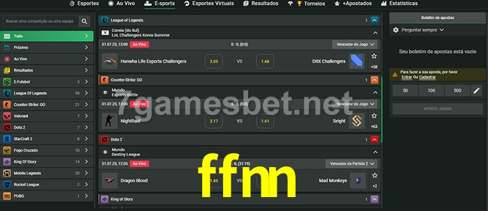 O ffnn oferece uma grande seleção de opções de apostas em e-sports com probabilidades competitivas
